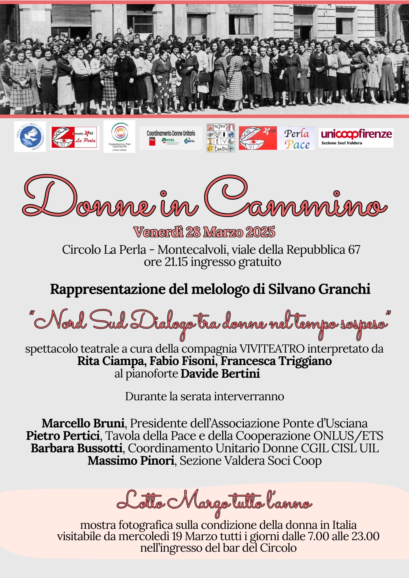 Venerdì 28 marzo alle ore 21.15 presso il Circolo sarà replicato lo spettacolo teatrale (melologo) di Silvano Granchi dal titolo “Nord – Sud, dialogo tra donne nel tempo sospeso”.