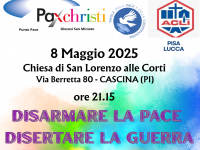 Giovedì 08 aprile avrà luogo a Cascina un'interessante iniziativa promossa da Pax Christi dal titolo "Disarmare la pace-Disertare la guerra, incontro con l'economista Antonio de Lellis", di cui alleghiamo il programma-invito.